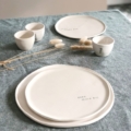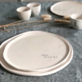 Il piatto viene realizzato con una tecnica simile alla porcellana, utilizzo terraglia bianca che lavoro a lastra pizzicata dalle mani.