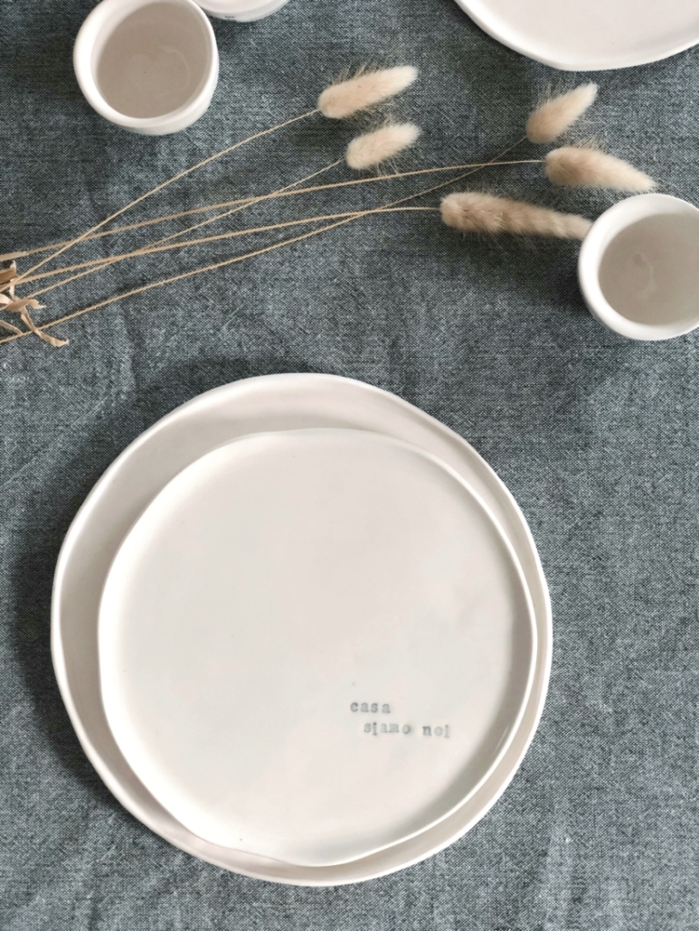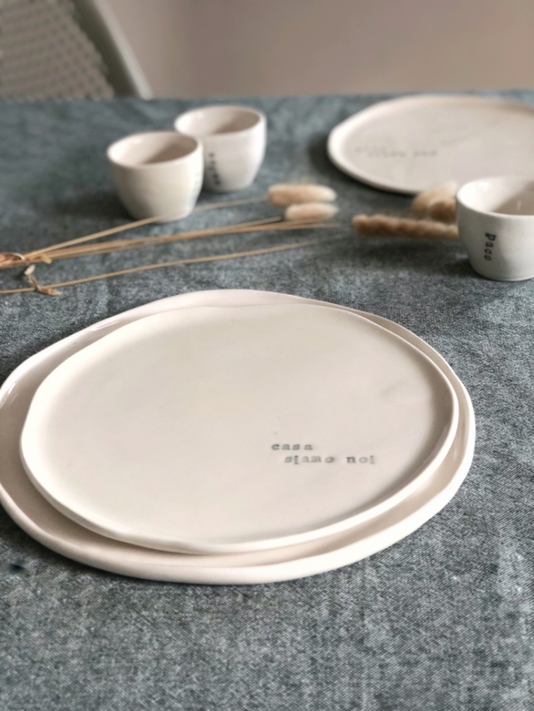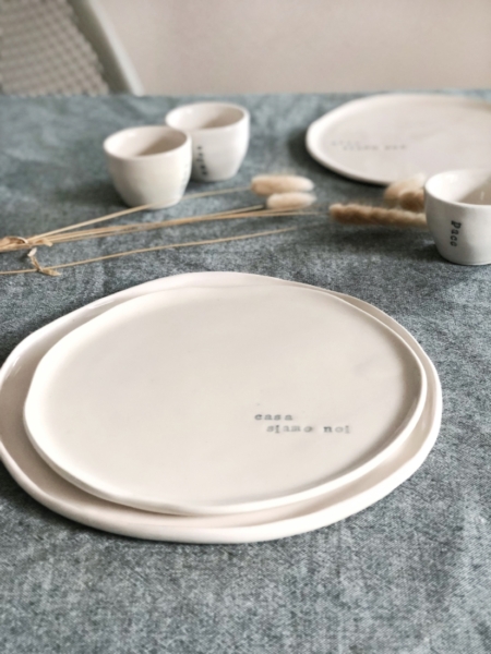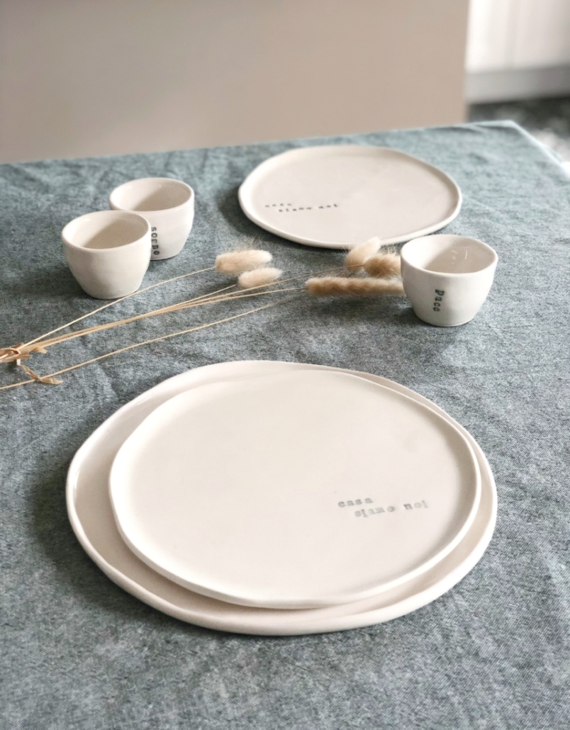 Si tratta di una linea coordinata di piatti, ciotole e tazzine che riporta questa frase, perfetta per creare pace e armonia in casa.